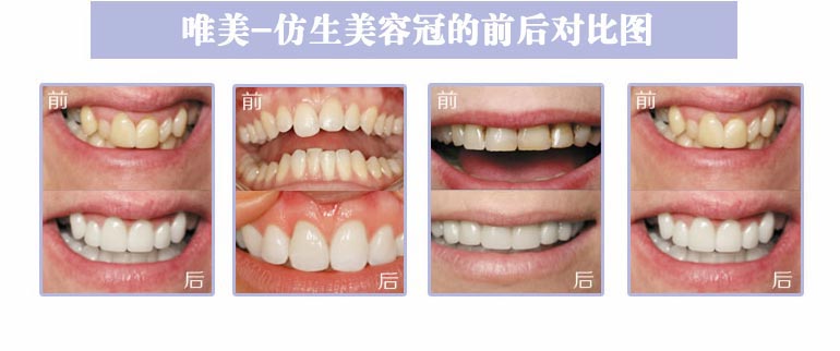 仿生美容冠牙齿美容技术是流行于欧美、日 的一种新兴牙齿美容技术,在传统烤瓷牙的基础上强调牙齿的美容效果,对错位牙、畸形牙的临床冠部分施以专业手段,后用美容冠加以修复。具有美牙不拔牙,无痛苦,时间短,牙齿坚固,多年后牙龈不会出现黑线等优点,从而达到终生有保障的美牙效果。